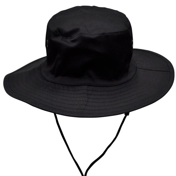 Description: UPF rating 50+. "Excellent Protection". Meets AS/NZS 4399:1999. Poly/ Cotton fabric with soft brim. Large metal eyelets for ventilation. Toggle and break-away clip on chin strap.