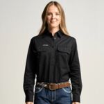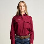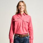 SOMERSET | Womens Half Button Long Sleeve Work Shirt - Gum Leaf Green OBCWWS001-GUM